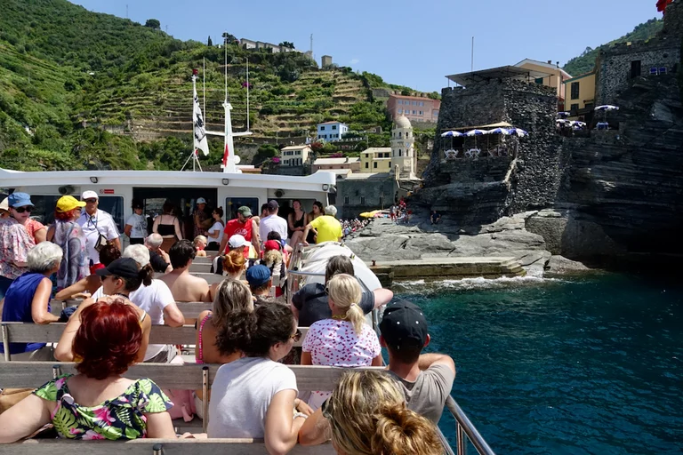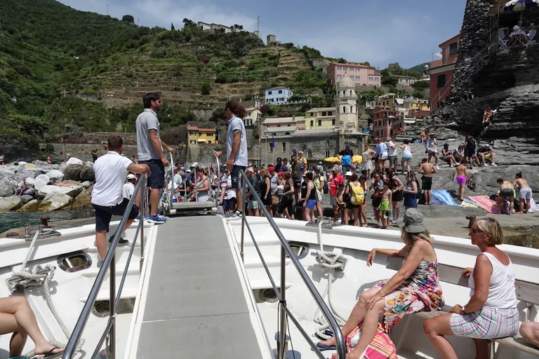 Das Boot stoppt mit Ausnahme von Corniglia auf Hin-und Rückfahrt an jedem der Orte. Deshalb hatten wir beschlossen, erst bis zum letzten der 5 Dörfer der Cinque Terre zu fahren und uns dann Dorf für Dorf Richtung La Spezia "vorzuarbeiten". Soweit der Plan!!