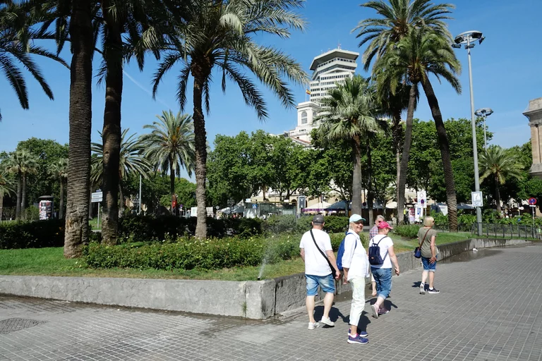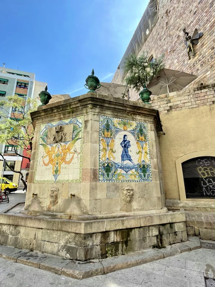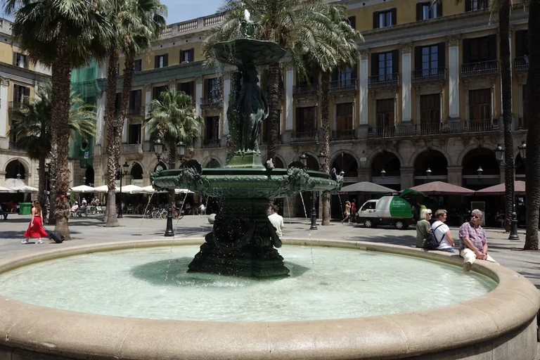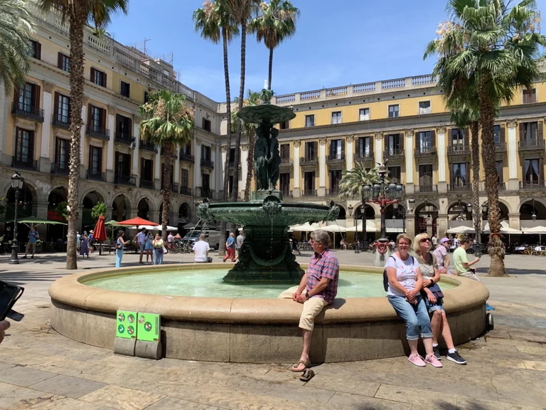 Am Plaza Real angekommen brauchten Jürgens Füße erst einmal eine Abkühlung. Die Temperaturen waren bei 30° angekommen. Da kam der "königliche" Brunnen gerade recht.