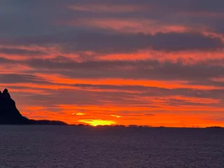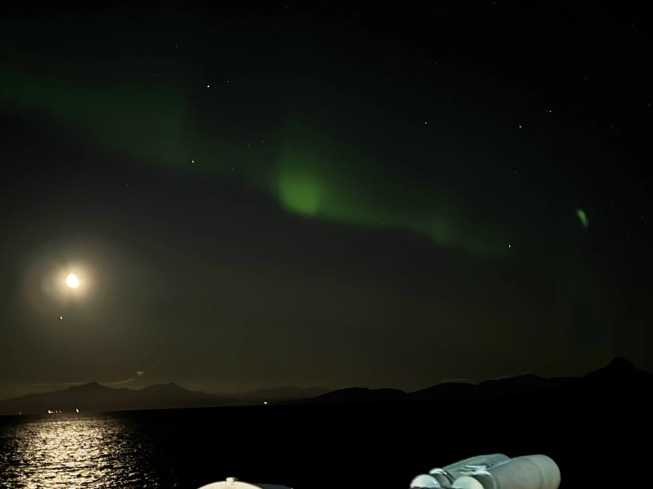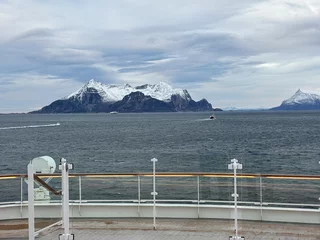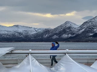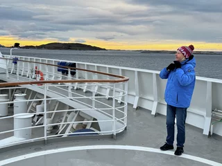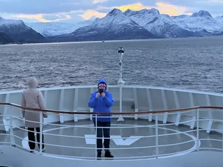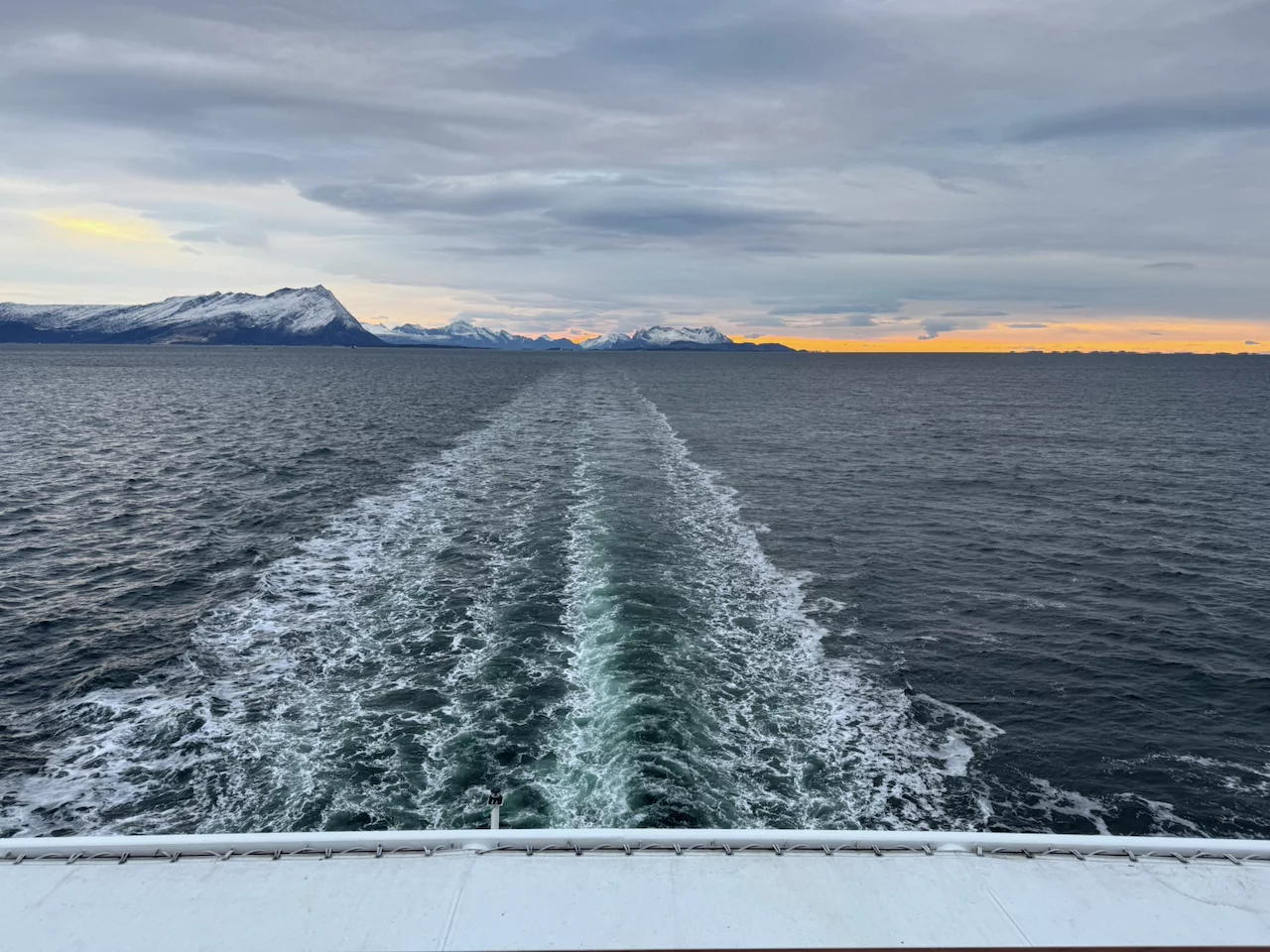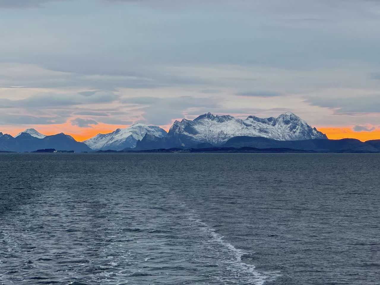 Inzwischen sind wir aus der Inside Passage in den großen Westfjord eingefahren, der quasi die Lofoten vom norwegischen Festland trennt. Draussen gibt es in der Dunkelheit außer ein paar Lichter nicht mehr viel zu sehen. Gegen 19:00 Uhr werden wir den Westfjord wieder verlassen und in die Inside Passage zurückkehren. Durch kleine schmale Fjorde führt unser Weg dann nach Nordosten bis nach Tromsø. In diesen Fjords macht die Spirit nur ganz kleine Fahrt, was zumindest für eine ruhige Nacht sorgt. Es sei denn, die Brücke schmeisst uns wegen aufziehender Polarlichter mit ihrer Durchsage aus dem Bett. Einen ganz kleinen Vorgeschmack haben wir während des Abendessens schon bekommen. Wir hoffen in den nächsten Tagen aber auf deutlich mehr!!!!