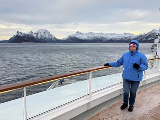 Nach dem Frühstück haben wir einige Zeit auf dem sogenannten "Spirit Walk" im Bug des Schiffes verbracht. Die Szenerie hier in den Fjorden ist speziell um diese Jahreszeit einfach faszinierend.