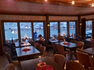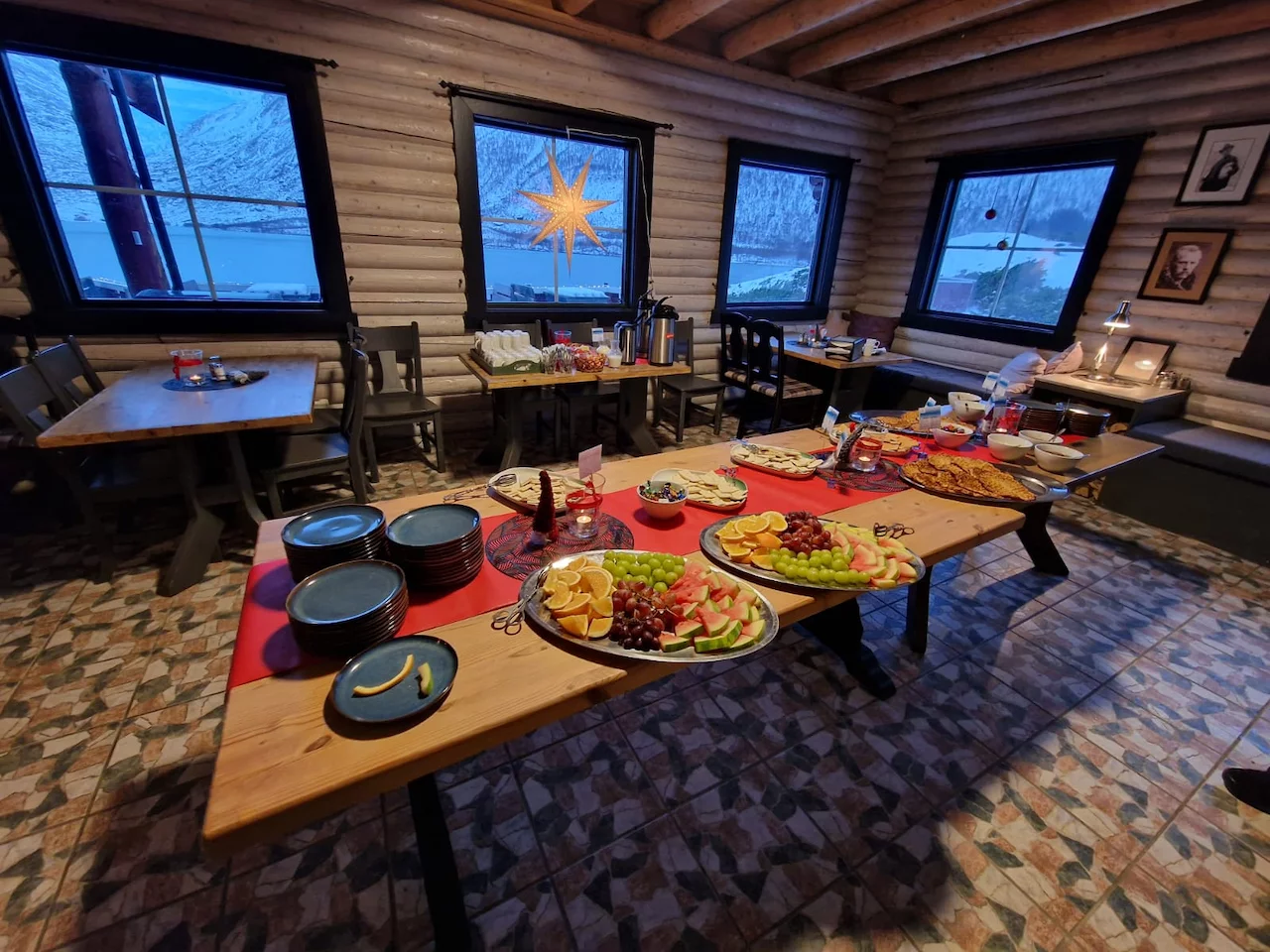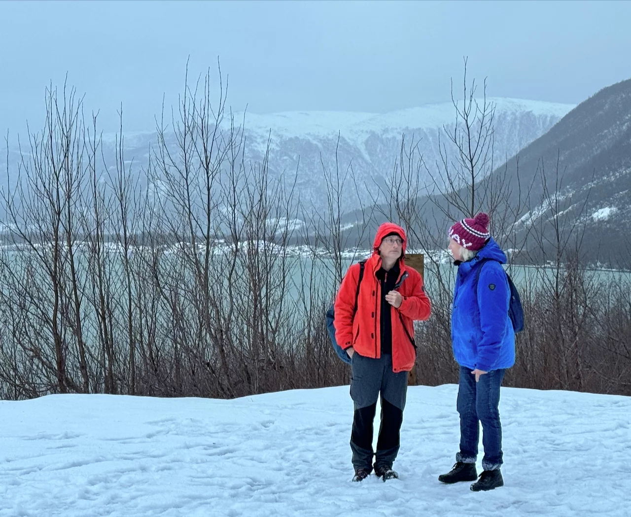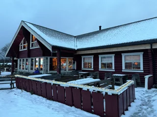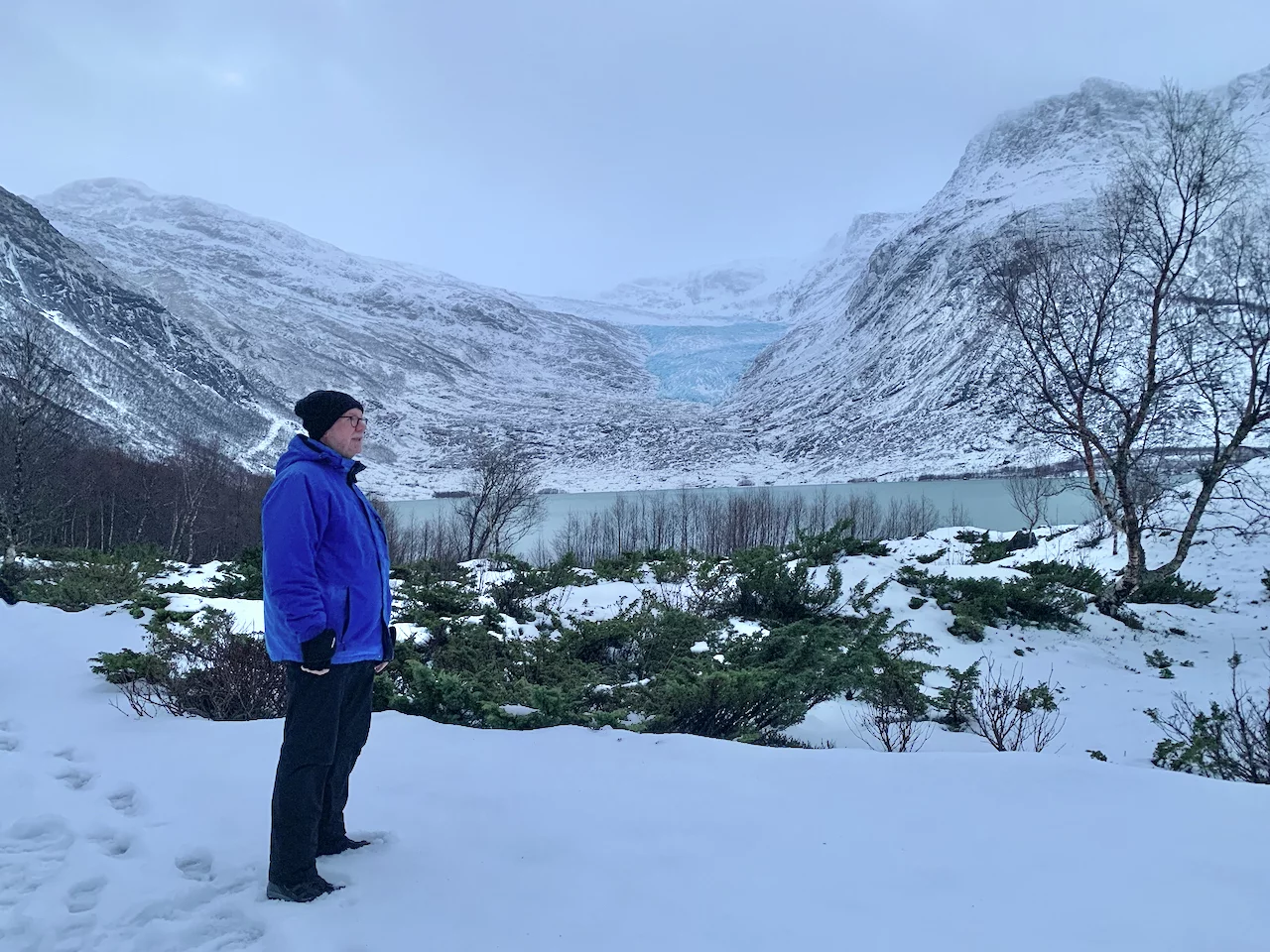 Der Spaziergang vom Anlegeplatz bis zum Gletscher ist ca. 4km lang. Das Morgenlicht verbreitete eine ganz eigene, fast schön mystische Atmosphäre. Nach ca. 1,5km passiert man ein kleines, typisch norwegisches Café, das speziell für uns bereits zu dieser frühen Stunde geöffnet hatte und schon weihnachtlich dekoriert war. Wir haben uns aber entschlossen, den angebotenen Leckereien erst auf dem Rückweg vom Gletscher zu frönen. Gleich vorweg: die frisch gebackenen Waffeln mit Kirschmarmelade und Sauercreme waren göttlich!!!