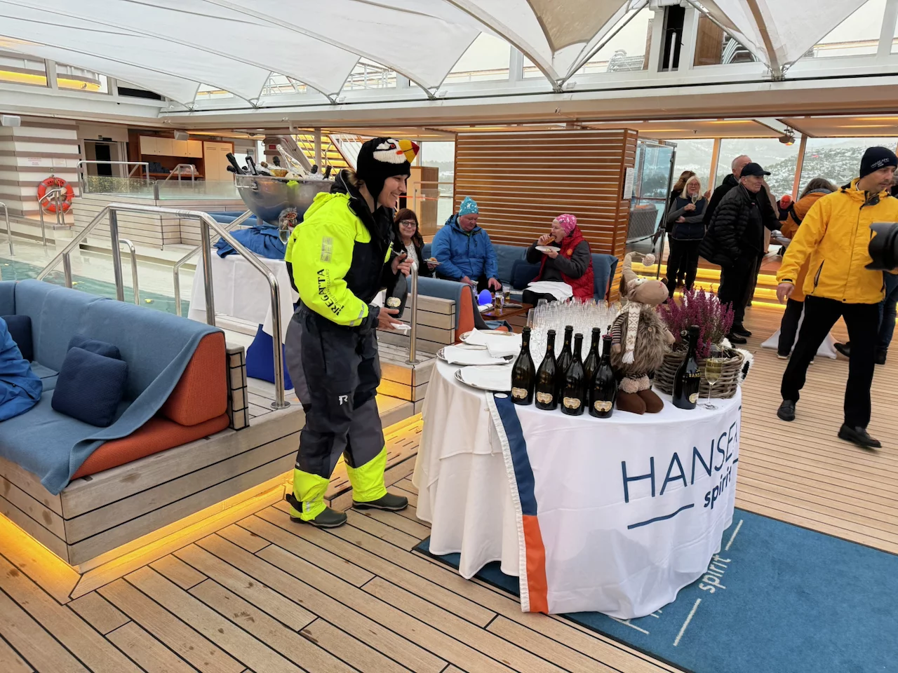 Die 2. Halbzeit des Tages stand unter dem Motto "Pølser Party", schon fast eine Tradition auf den Hapag Lloyd Schiffen, die in Nordeuropa, der Arktis oder Grönland unterwegs sind.