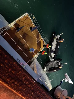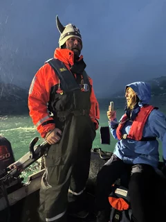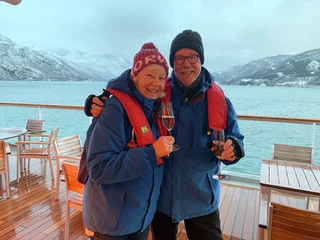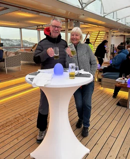 Auf dem Rückweg fing es leider an zu regnen, was auf dem Zodiac auf der Fahrt zum Schiff zu einem leicht feuchten Hinterteil führte. Das hat uns aber nicht daran gehindert, den "Willkommen zurück" Champagner zu genießen..