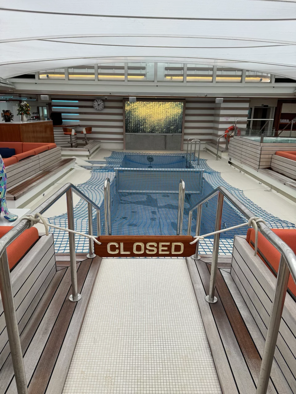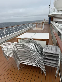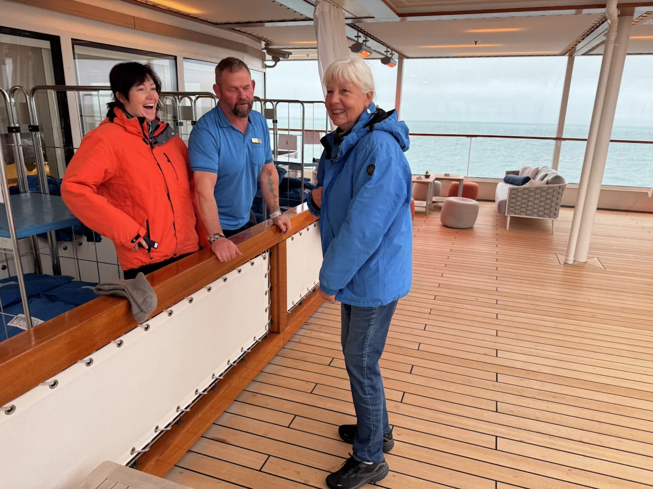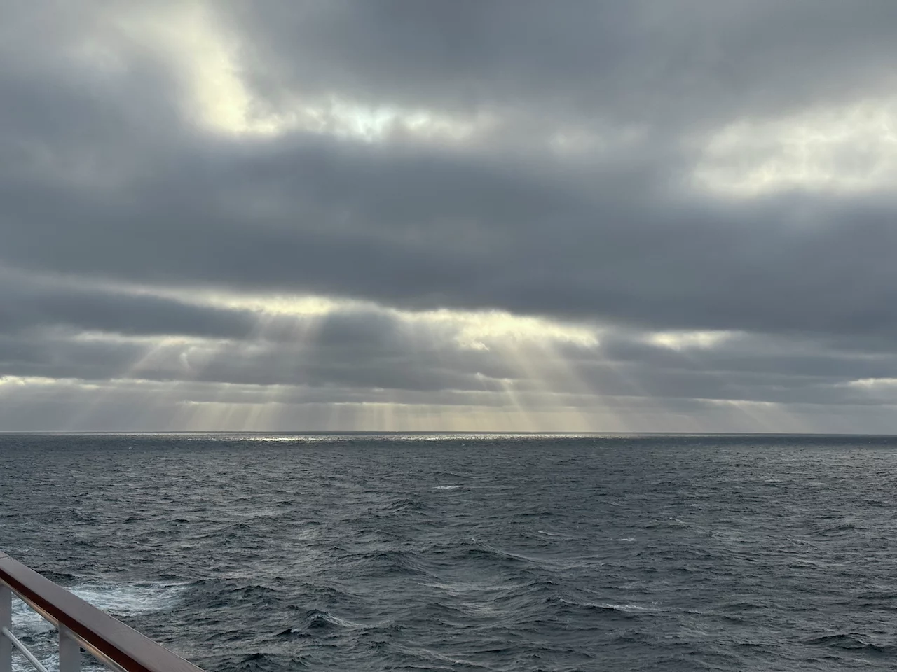 Die Nacht war bereits etwas schaukelig. Während des Frühstücks lud uns der Kapitän zu einer kurzen Informationsrunde zum Wetter der nächsten Tage in’s HanseAtrium auf Deck 4 ein. Bereits da schwante uns bereits “Böses” und unsere Ahnung hat sich dann auch schnell bestätigt.