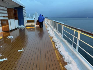 Trotzdem sind wir bei Ankunft am Fjord direkt raus auf den Spirit Walk, einem Umlauf direkt am Bug des Schiffes.