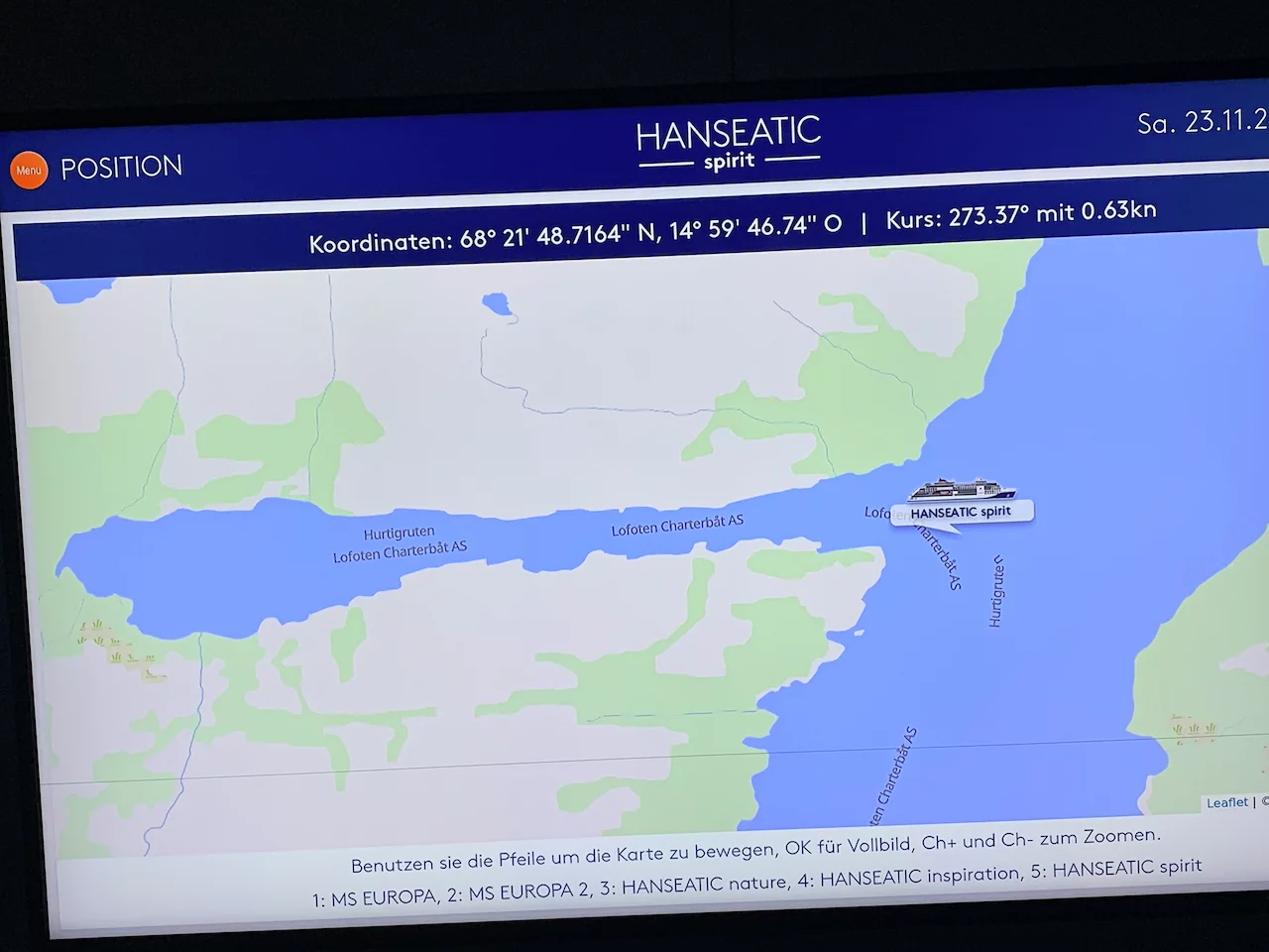 Dann auch noch die gute Nachricht, dass wir Erlaubnis erhalten haben, bereits heute Abend in Svolvaer anzulegen. Damit ist eine ruhige Nacht garantiert. Zumindest, was den Seegang angeht!!