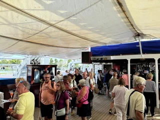 Die ersten Eindrücke vom Schiff waren sehr positiv. Das zentrale Herzstück ist die Tropical Bar mittschiffs. Hier spielt sich so ziemlich alles ab, von Party, Modenschau über Disco bis hin zu Informationsveranstaltungen.