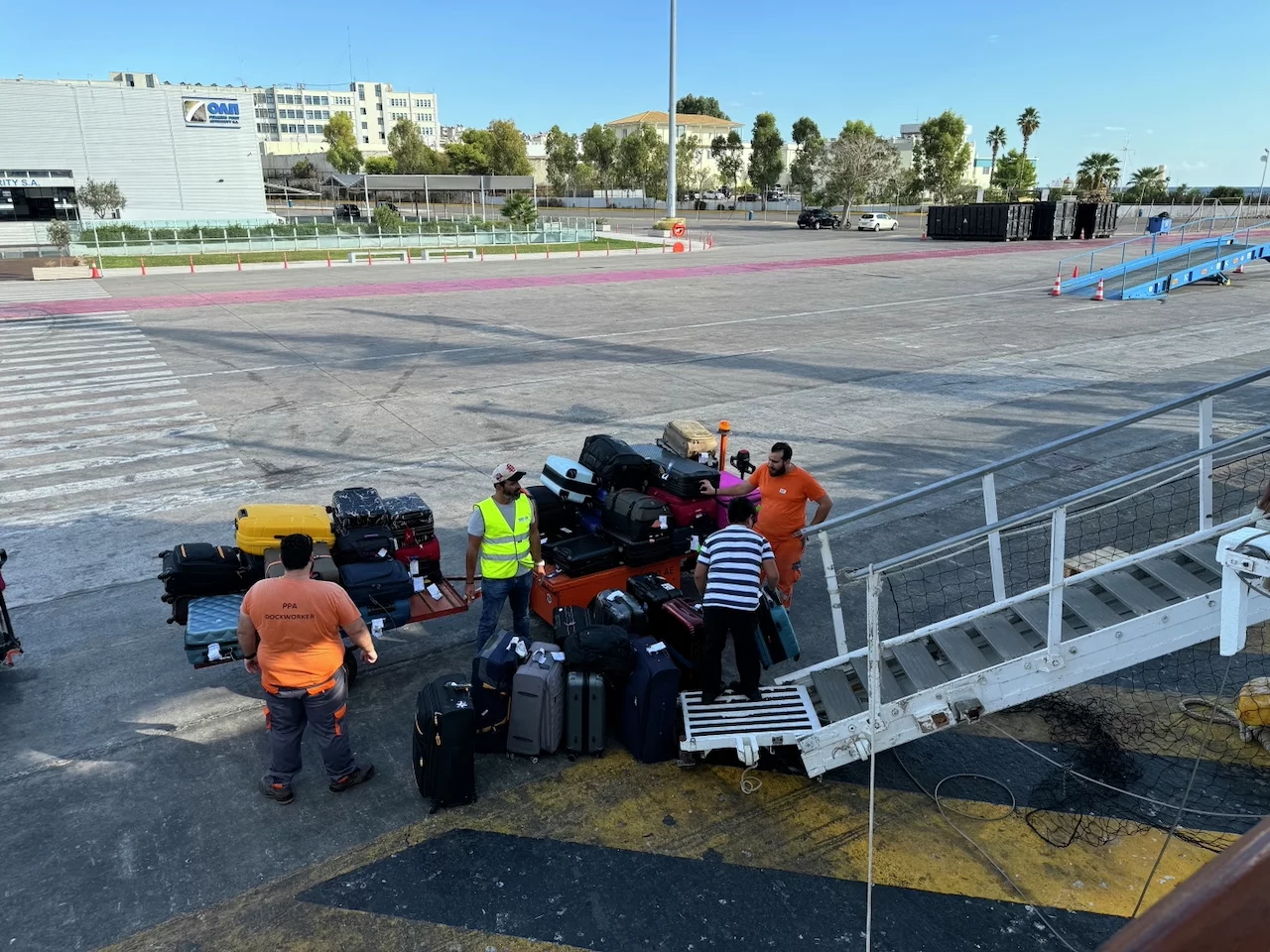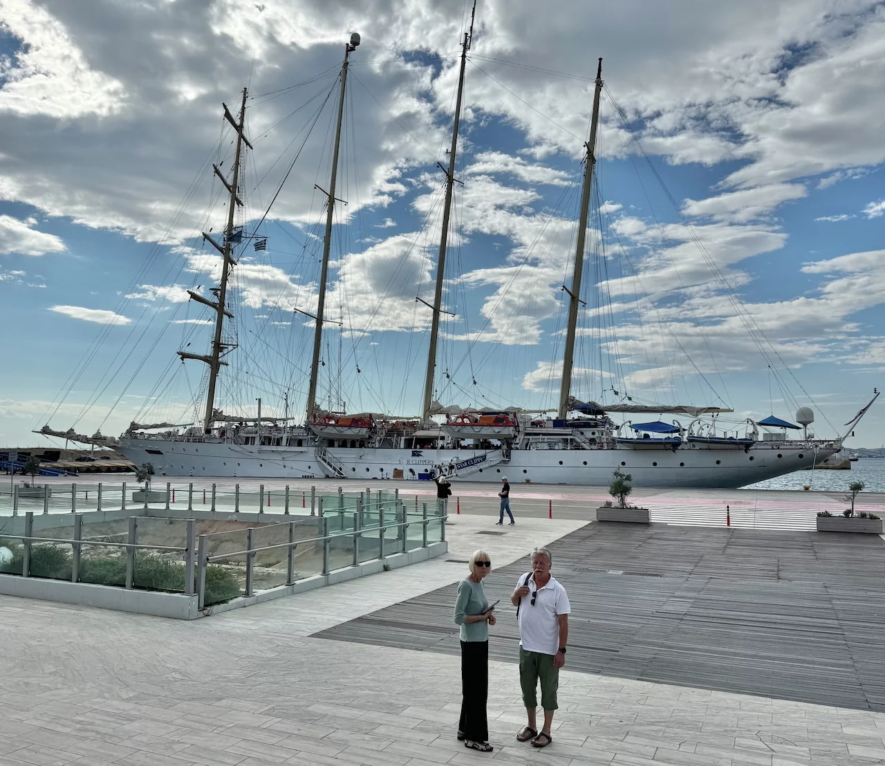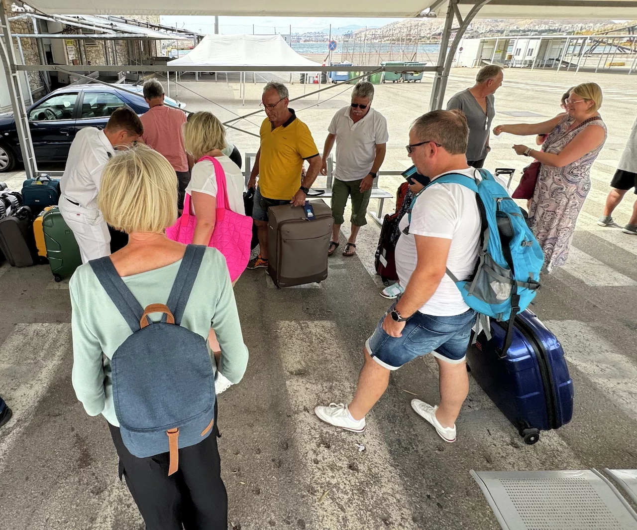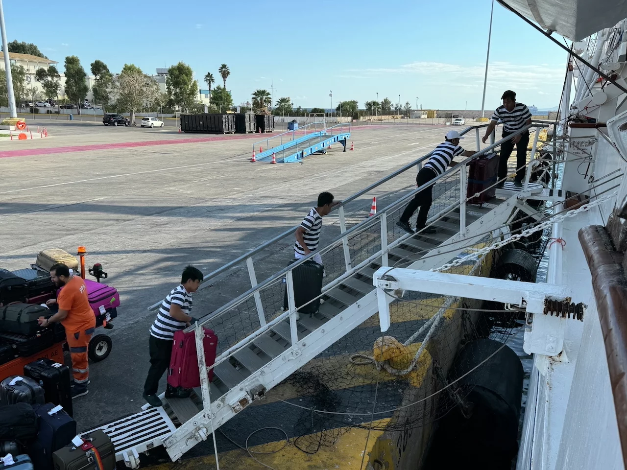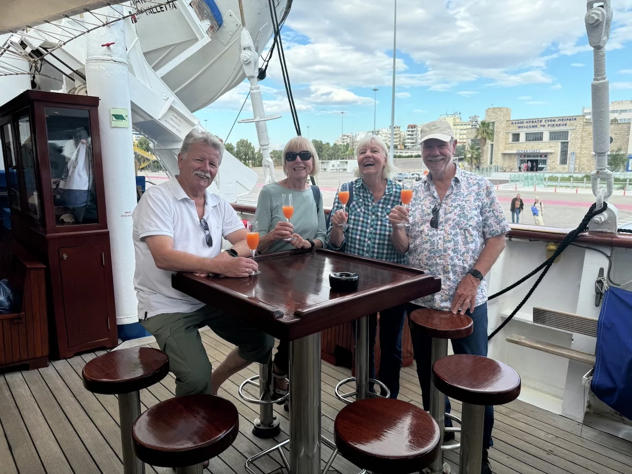 Pünktlich um 15:00 Uhr kam der Shuttlebus für den Transfer zum Hafen in Piräus. Check-in und Sicherheitskontrolle verlief fast problemlos. Nur der griechische Zoll zickte ein wenig herum, den Gitte und Jürgen hatten in einem ihrer Koffer ein kleines Taschenmesser, das ihnen suspekt vorkam. Wie genau der Schwager dieses Problem gelöst hat, entzieht sich allerdings meiner Kenntnis, aber der Koffer durfte schlußendlich mit an Bord.
