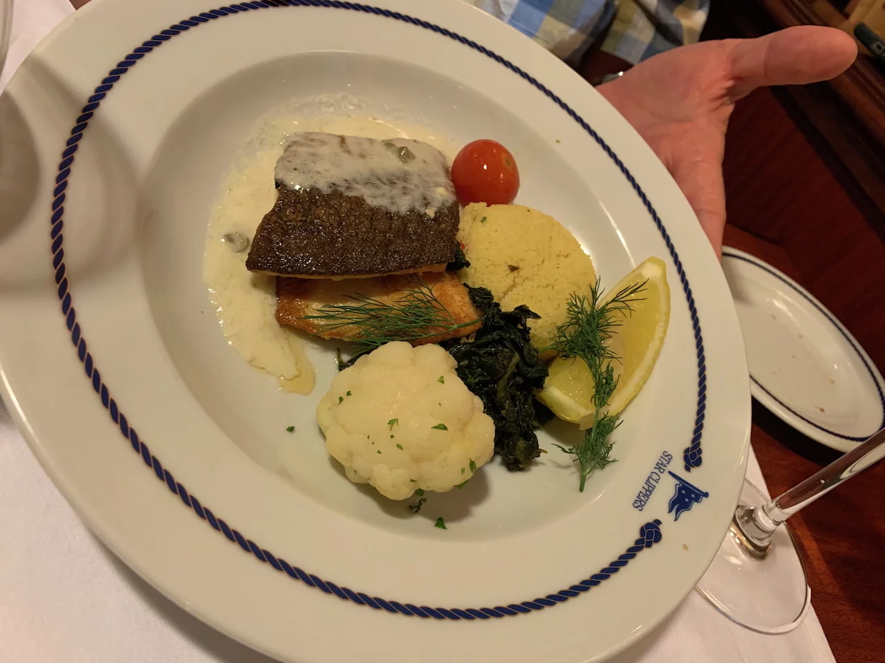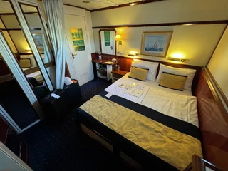 Dann konnten wir auch bald unsere Kabine beziehen und nach der üblichen Seenotrettungsübung ging es zu einem leckeren Abendessen.