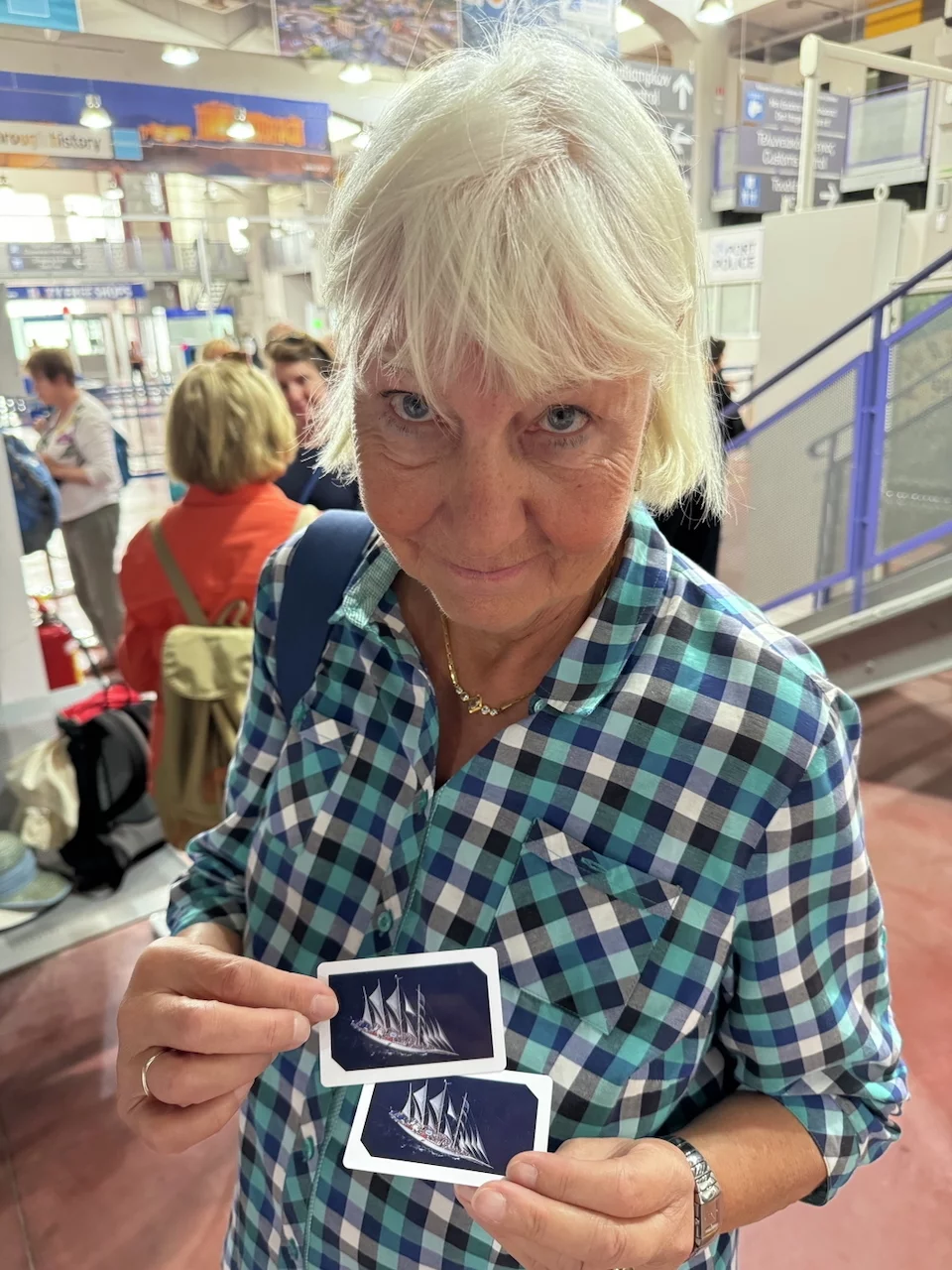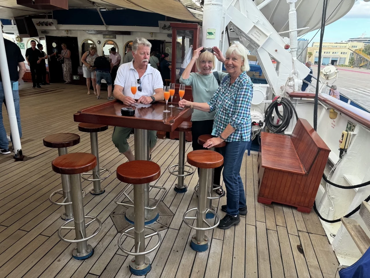 Da wir noch einen Moment auf unsere Koffer warten mussten, war die Chance für einen ersten kurzen Rundgang auf dem Schiff gegeben. Die Neugierde war natürlich groß, denn für uns vier war die Starclipper etwas Neues, im Gegensatz zu den anderen Gruppenmitgliedern, die teilweise schon 2 Fahrten mit ihr gemacht haben.
