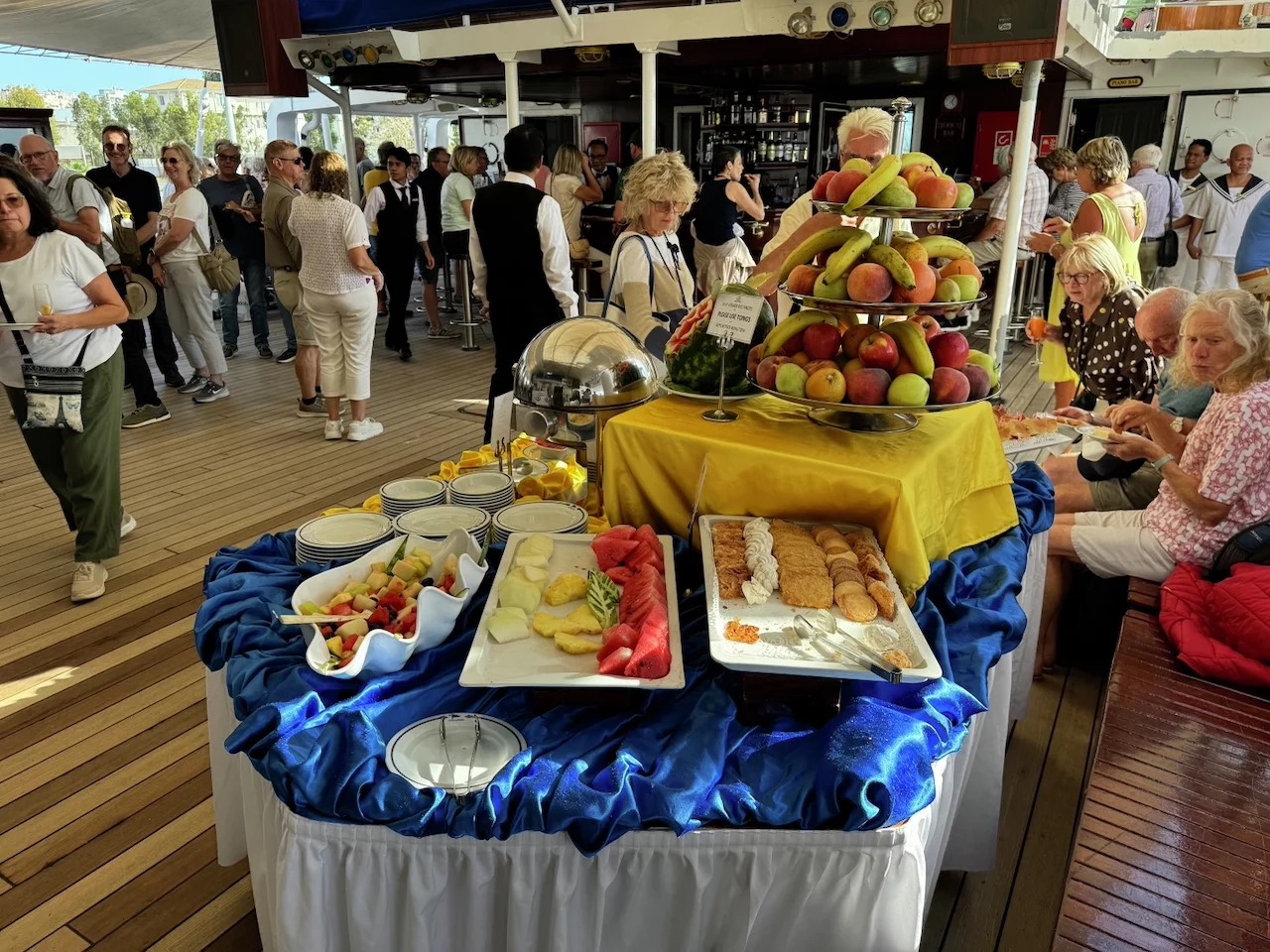 Morgen ist der einzige Seetag dieser Reise auf dem Weg nach Kusadasi in der Türkei. Dann ist Zeit, ein wenig mehr vom Schiff zu berichten.
