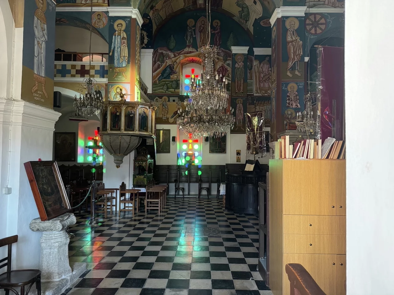 Ins Auge sticht auch die auf einem Hügel erbaute Kirche. Leider war sie geschlossen. Also blieb nur einTrick-Shot durchs Fenster.