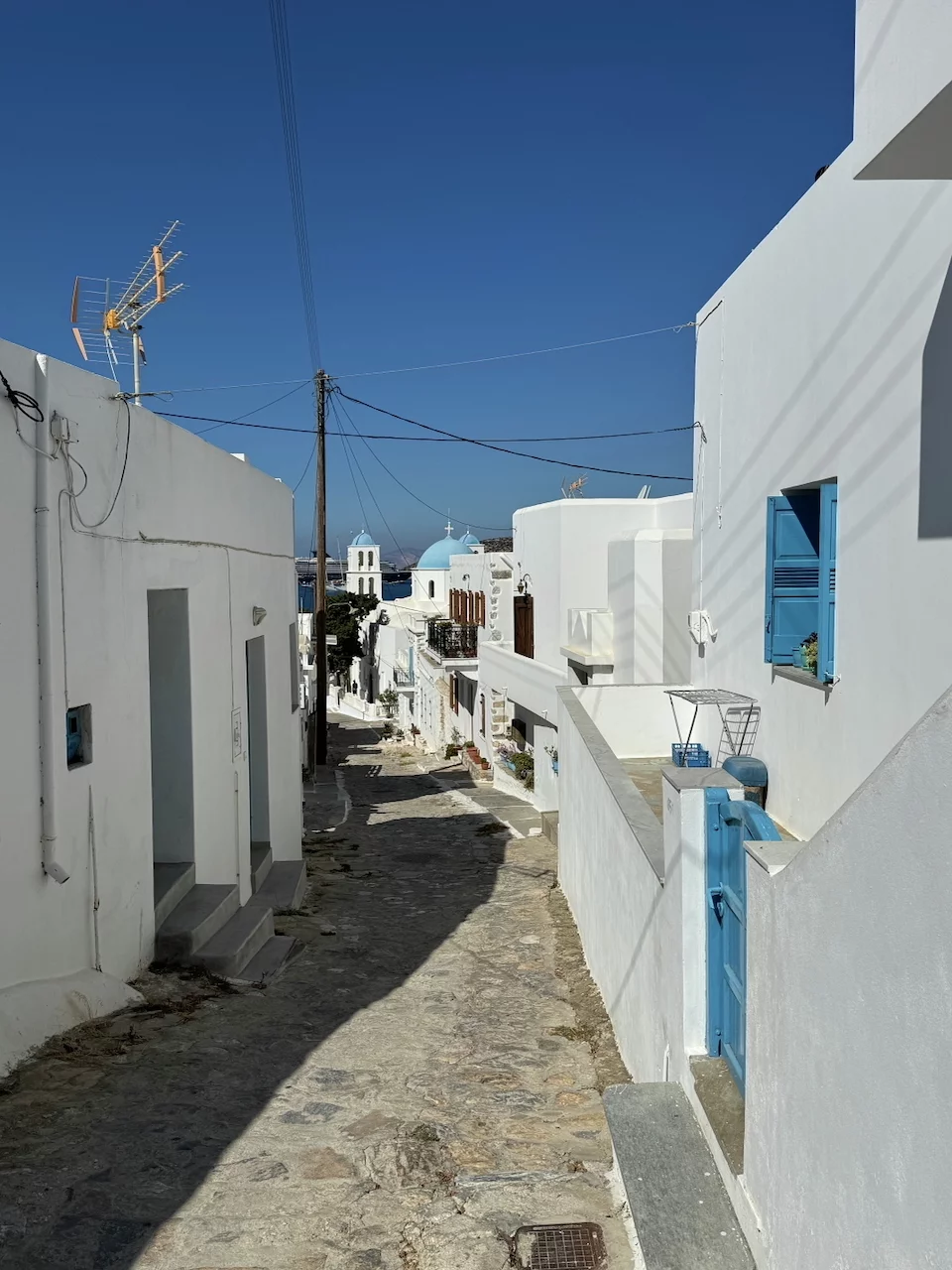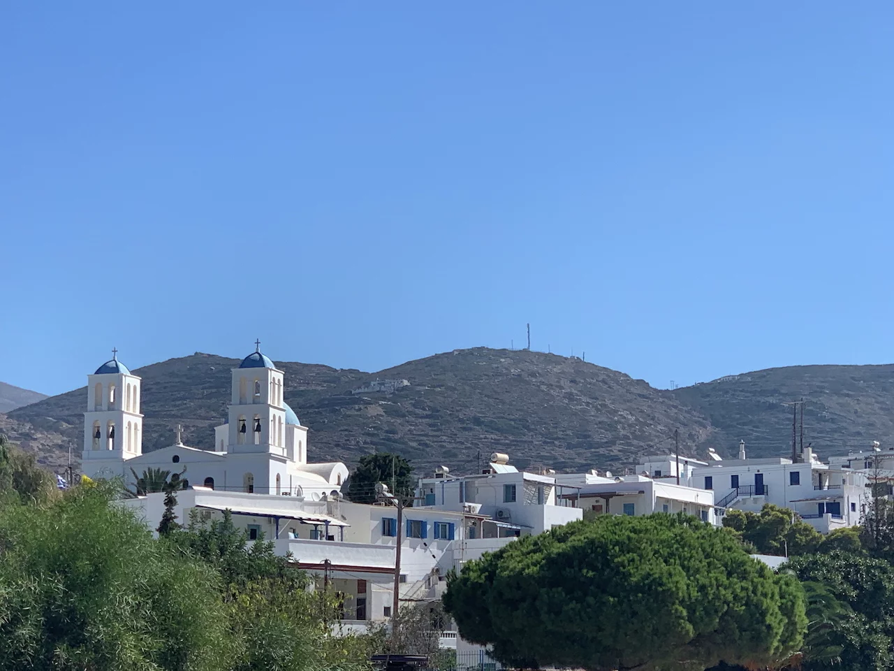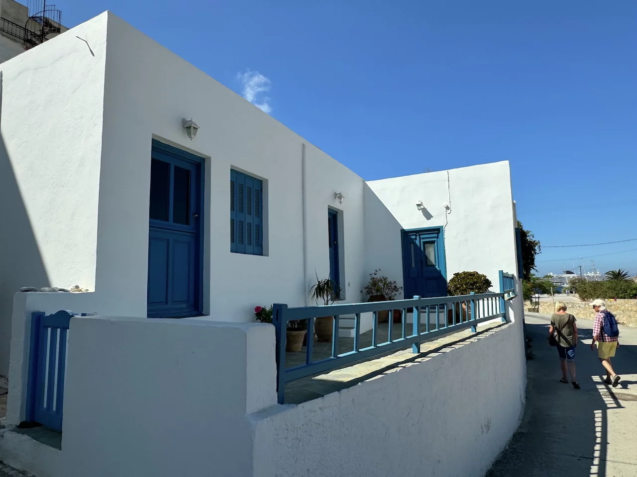 Der hübsche kleine Ort ist verwinkelt angelegt, man flaniert durch verwunschene enge Gassen. Die Häuser sind ganz dem typischen kykladischen Architekturstil folgend gebaut. So reihen sich schachtelförmige schneeweiße Häuschen, mit gelegentlich zu sehenden blauen Verzierungen, aneinander.