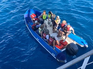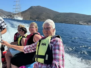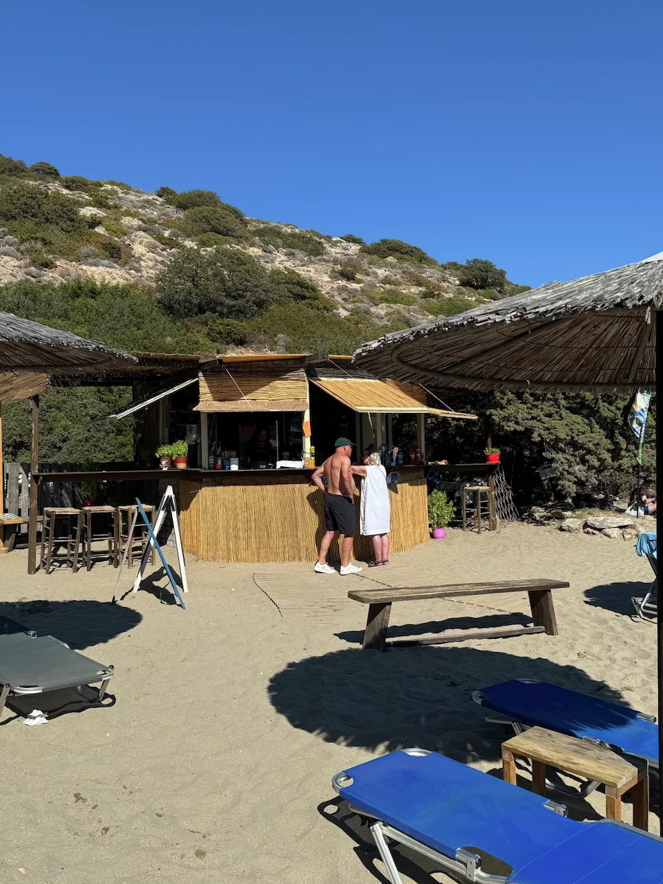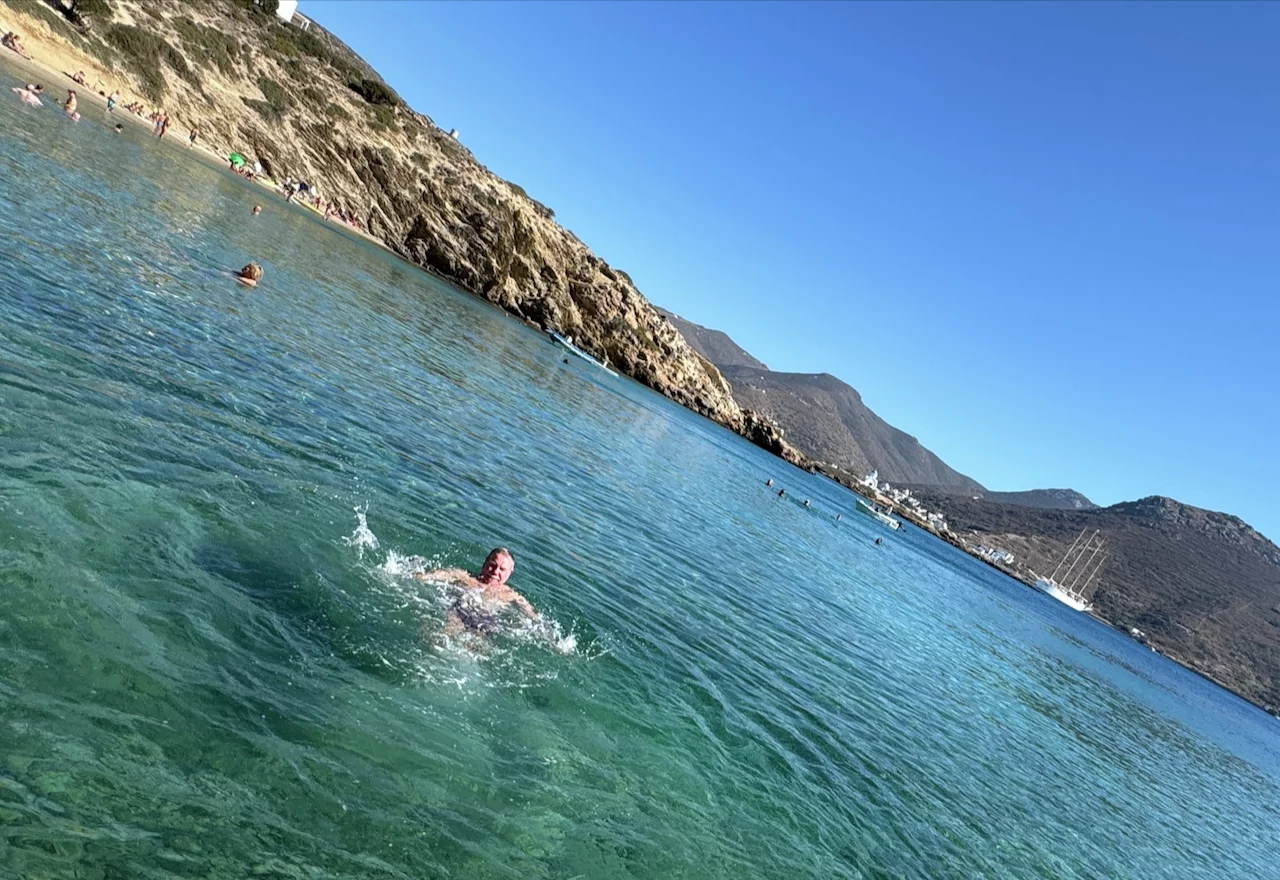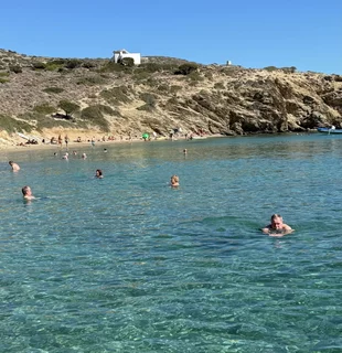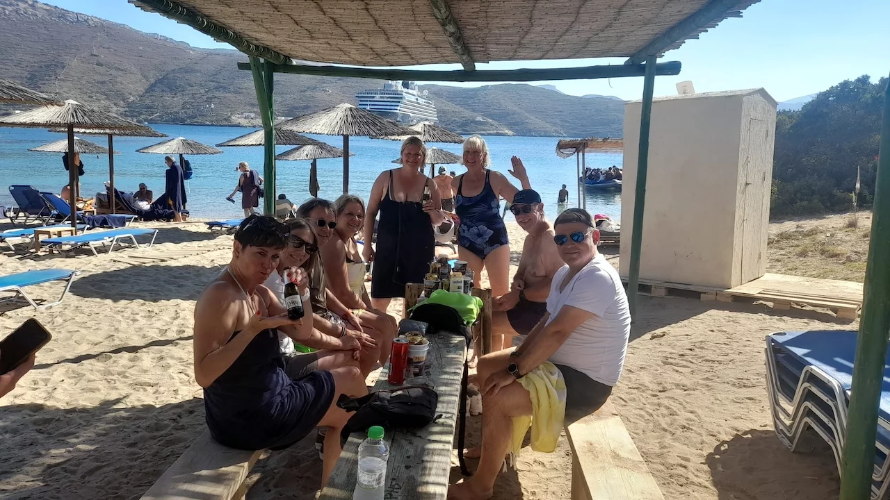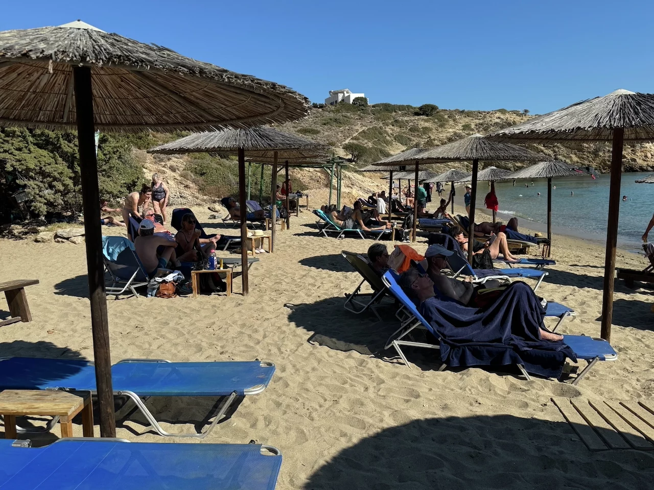 Für den Nachmittag war Schwimmen im Meer angesagt. Mit einem Zodiac ging es rüber zum Maltezi Beach. Das glasklare, türkisfarbene, 25° warme Wasser der Bucht war ein Traum. Was man von den Preisen für Liegen und Sonnenschutz allerdings nicht gerade behaupten konnte.