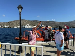 Es gibt auf Amorgos die beiden Hafenorte Aigialis im Norden der Insel und Katapola, wo auch unsere Tender angelegt haben. Bei der Fahrt vom Schiff durch die Bucht zum Hafen bot sich uns bereits ein fantastischer Blick auf die Küste mit ihren interessanten Felsformationen.