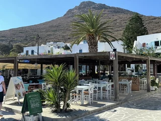 Katapola hat gerade im Hafenbereich eine eher touristische Infrastruktur mit Restaurants, Bistros, Shops und Unterkünften.