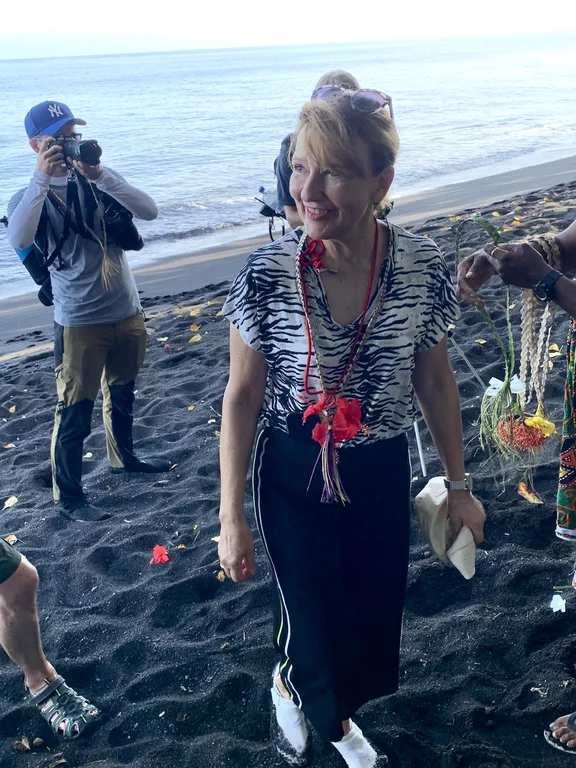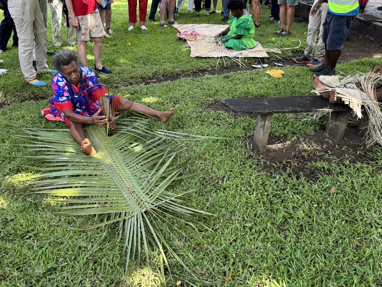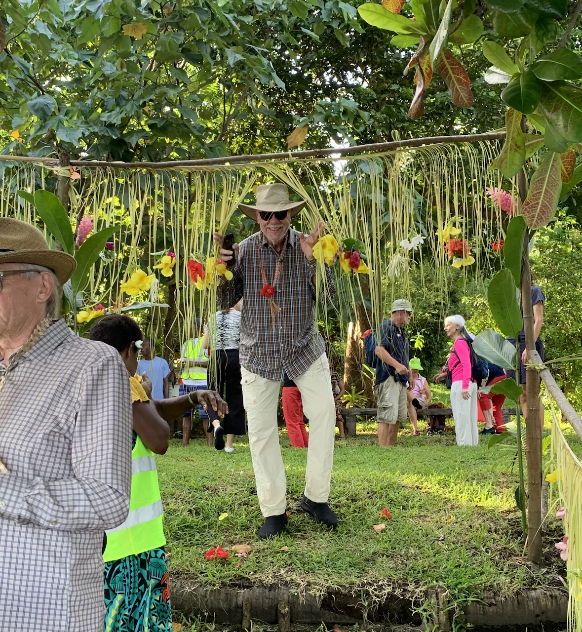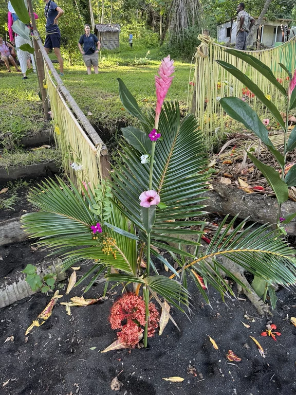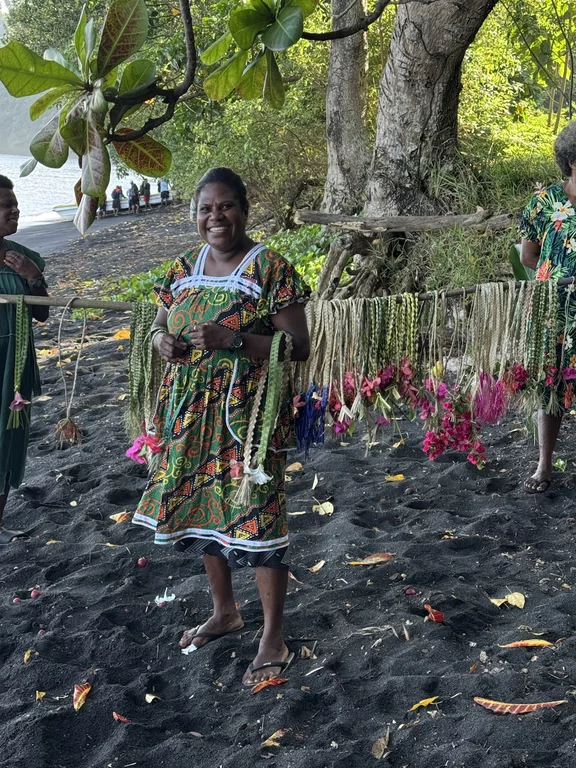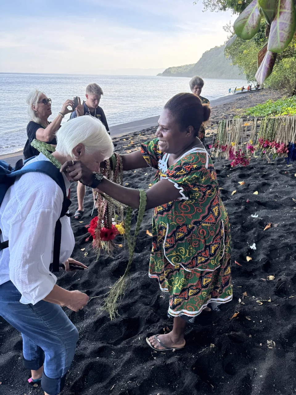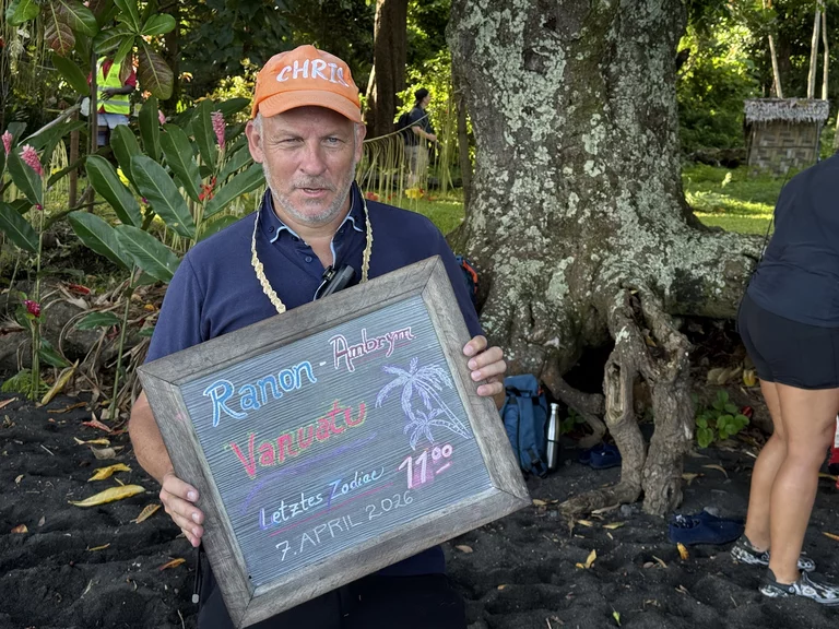 Ranon ist ein kleines Dorf an der Westküste von Ambrym Island im Inselstaat Vanuatu. Die Insel gehört zur Provinz Malampa und ist weltweit bekannt für ihre aktive Vulkanlandschaft sowie ihre tief verwurzelten kulturellen Traditionen. Dazu gehört auch eine ausgeprägte Willkommenskultur, mit der wir auf der Insel empfangen wurden. Eine „Blumenkette“ aus geflochtenemBlättern ist Ausdruck dieser Tradition.