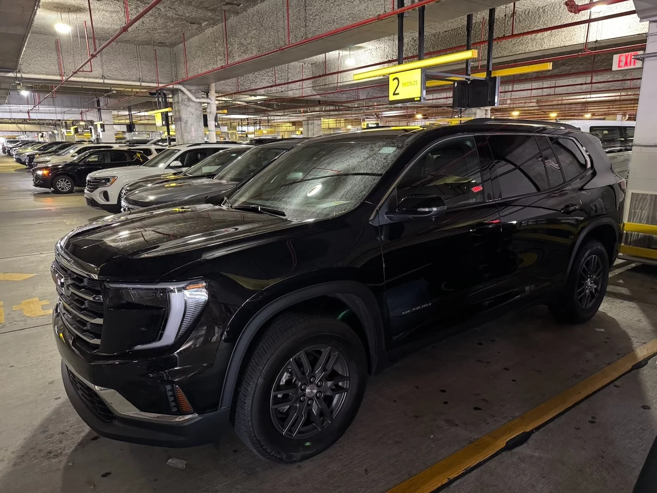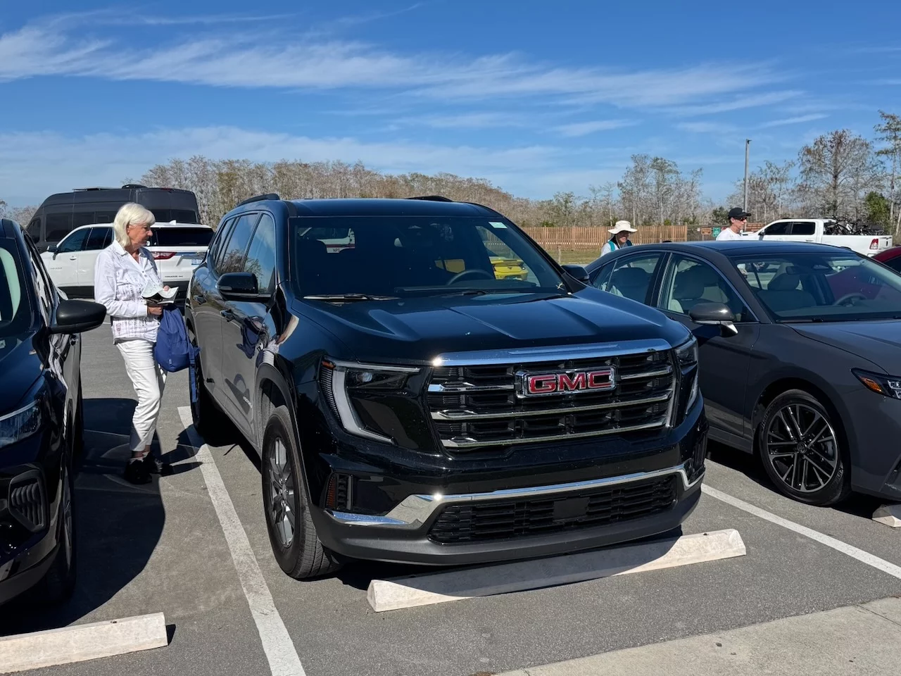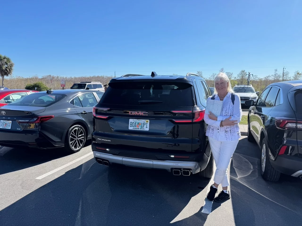 Zur Übernahme des vorgebuchten Mietwagens mussten wir zunächst mit dem Taxi zum Flughafen. Diesmal aber kein Cabrio, sondern einen Standard SUV von Hertz. Als wir zum Fahrzeug kamen, hat uns fast der Schlag getroffen. Der Agent am Schalter hatte gefragt, wieviele Koffer wir haben. Die Antwort 4 Stück hat ihn wohl dazu gebracht, uns ein etwas größeres Auto zu zuteilen. Vor uns stand ein fast neuer GMC Acadia mit gerade mal 5100 Meilen auf der Uhr und mit allen "Bells and Whizzles" ausgestattet. Ein siebensitziges Riesenschiff. Die erste Reaktion war, Umtauschen!! Das wäre zwar möglich gewesen, aber auch mit ziemlichen Aufwand verbunden. Also haben wir uns entschieden, ihn zu "behalten".