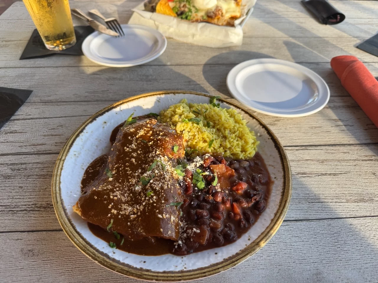 Wie der Zufall es will, gibt es direkt um's Eck ein mexikanisches Restaurant. Damit war klar, was es heute zum Abendessen gibt. Anschließend haben wir noch einen schönen Verdauungsspaziergang durch die unmittelbare Nachbarschaft gemacht. Man kann sehr schön an der Marina entlang flanieren. Die Auswahl an Restaurants, Bistro's und Bars ist groß. Also Verhungern oder Verdursten werden wir hier mit Sicherheit nicht. Allerdings haben die Preise für Unterkunft und Verpflegung gewaltig angezogen. Hotelzimmer liegen zwischen 200 - 250 Dollar, ein Abendessen für 2 Personen liegt zwischen 50 - 70 Dollar, je nach dem, wie viele Bier man dazu trinkt. Zieht man Wein zum Essen vor, dann werden es auch schnell 80 Dollar.