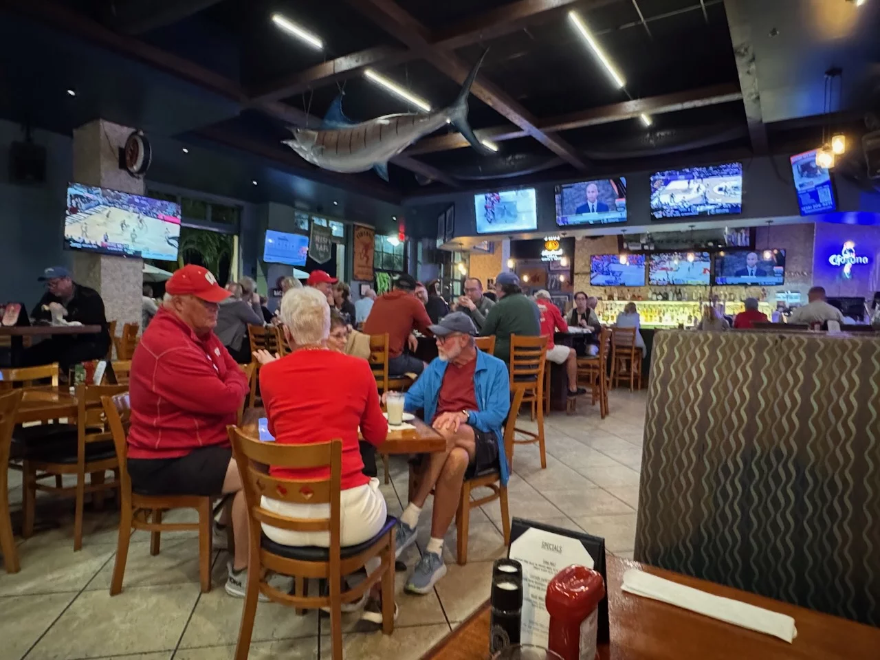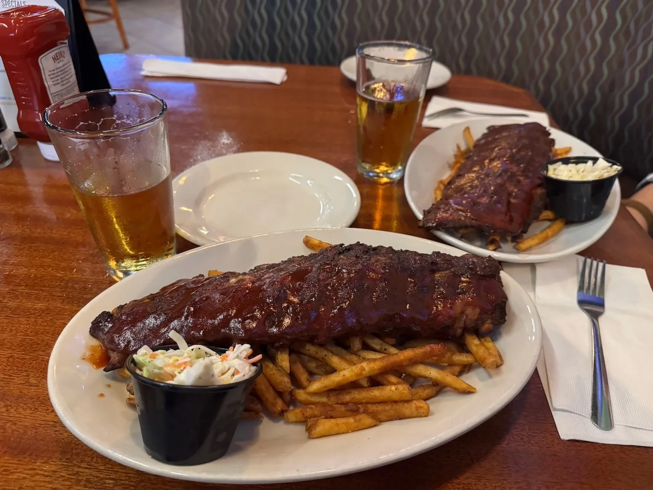 Mittwochs gibt es in einer Sportsbar direkt neben dem Hotel als Special Babyback Ribs. Wie immer in den USA waren sie "Fall of the Bone and Fingerlicking good". An so einem Angebot können wir einfach nicht vorbeigehen. Nebenbei kann man dort auf 17(!!) Fernsehern die unterschiedlichen Sportübertragungen anschauen.