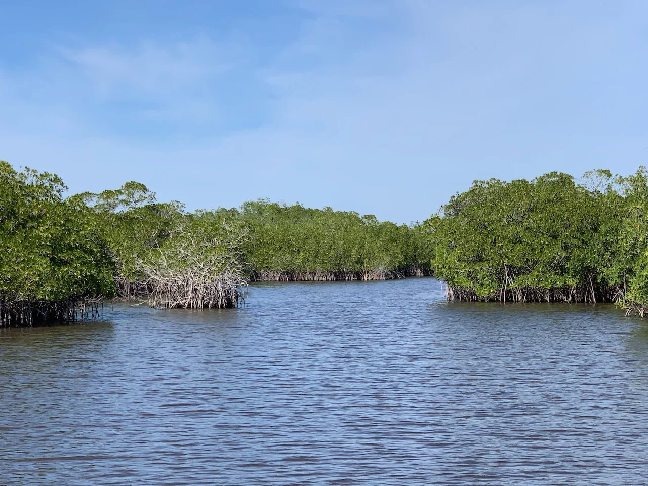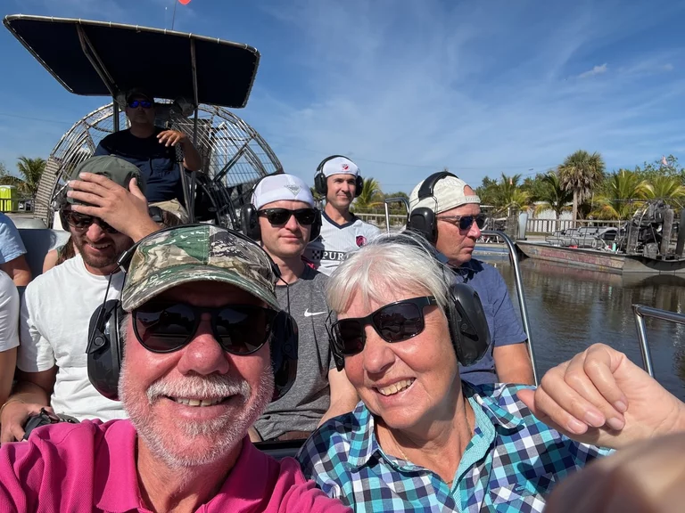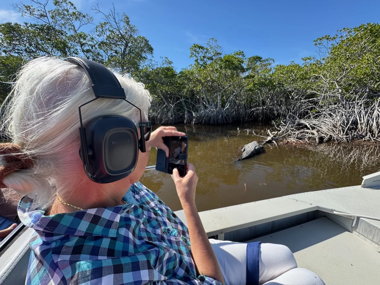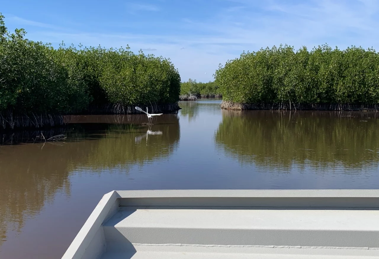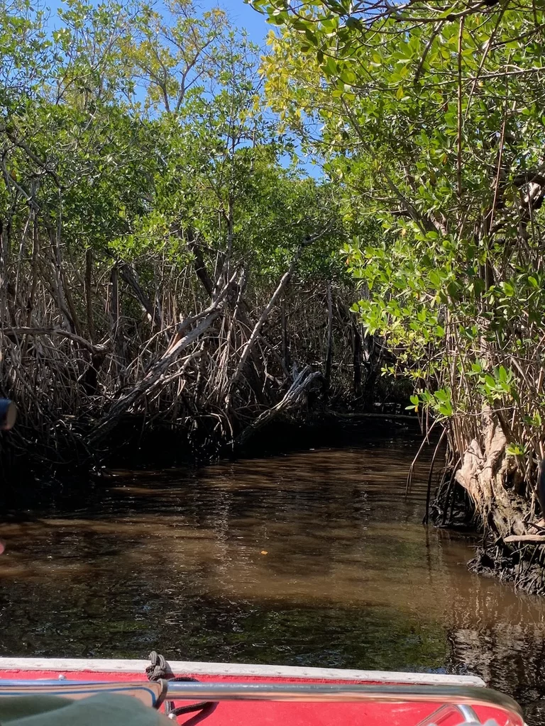 Captain 3, so nannte er sich, sprach einen langgezogenen Südstaaten-Slang, der aber trotzdem recht gut zu verstehen war. Zumindest galt das für die Zeit, wenn das Airboat im Leerlauf lief oder wir langsam gefahren sind. Sobald er richtig Gas gab, überdeckt der Lärm von dieser "Höllenmaschine" im Heck alles andere. Und er gab häufig richtig Gas. Da wird das Blickfeld in den schmalen Mangroventunneln immer enger. Es hat uns einen Riesenspaß gemacht.