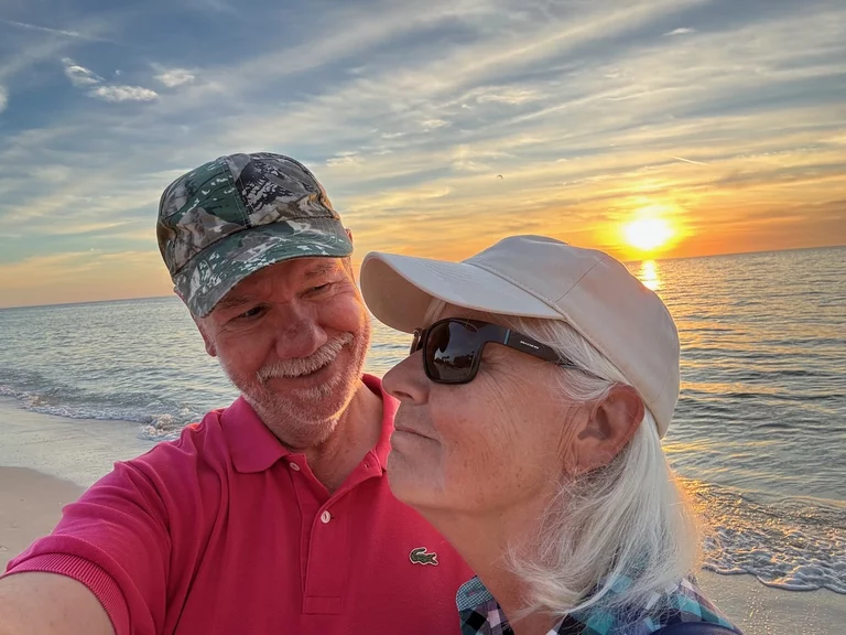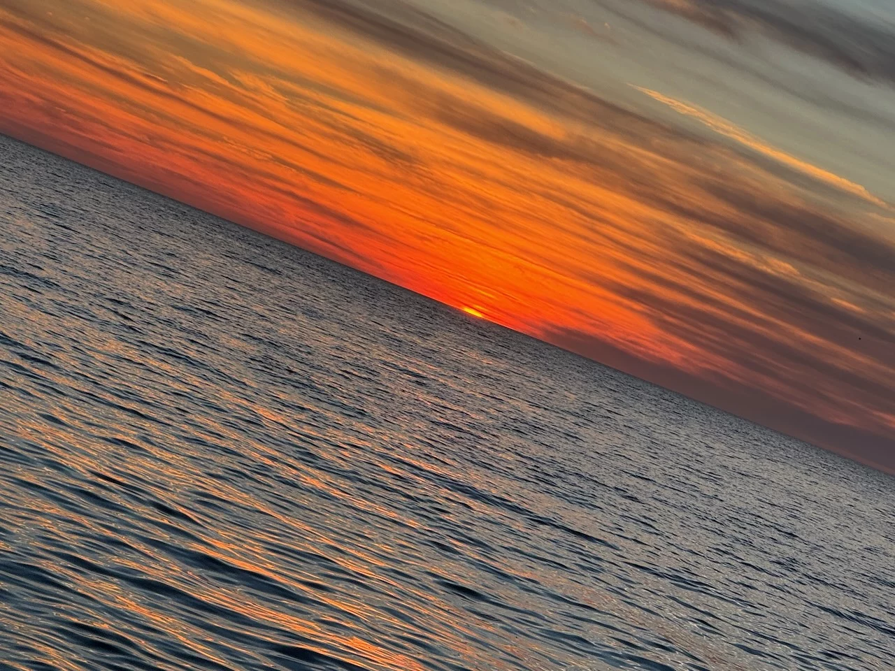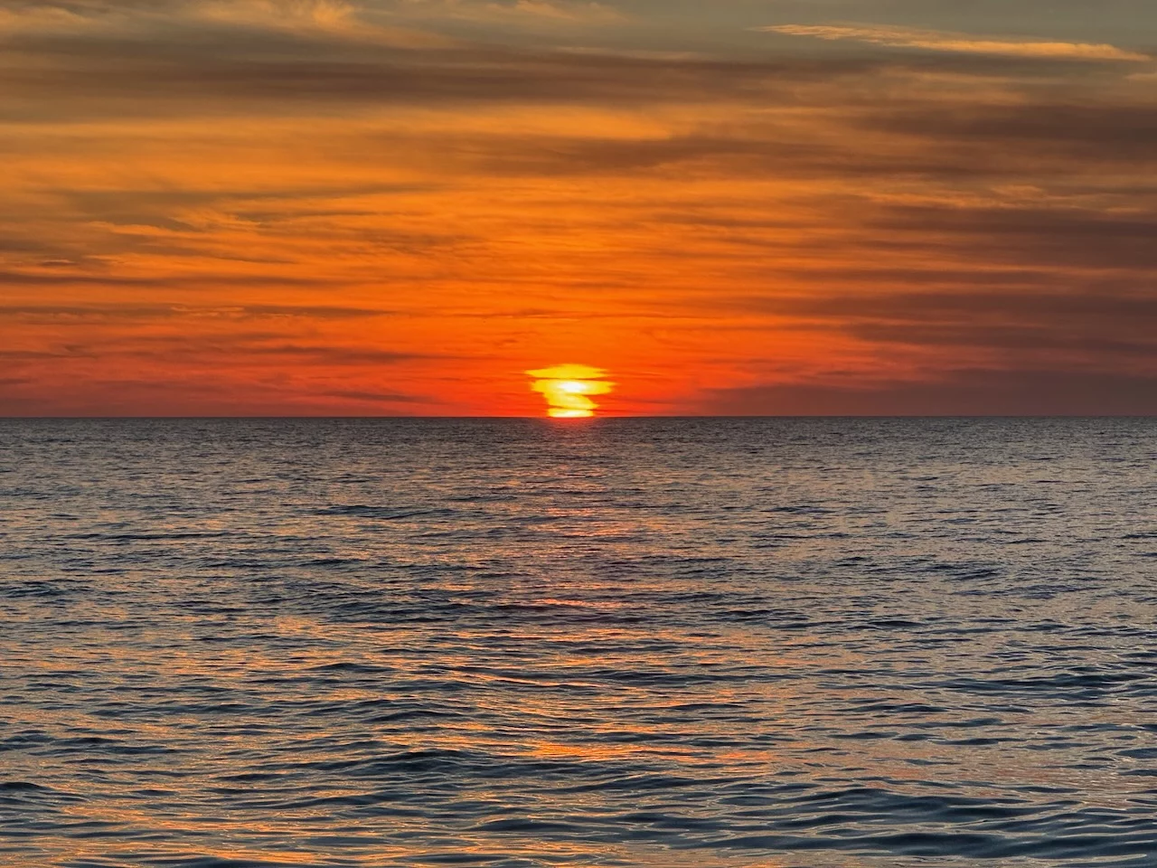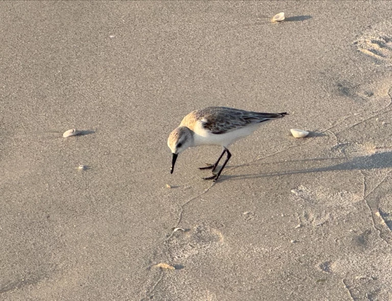 Am Strand angekommen saßen schon viele Sonnenuntergangsanbeter auf ihren mitgebrachten Stühlen oder Decken und warteten auf das tägliche Naturschauspiel. Es sieht schon spektakulär aus, wenn die Sonne ganz langsam in den Golf von Mexico versinkt. Zur Unterhaltung während der Wartezeit tragen Strandläufer bei, die sich an dem "gedeckten Tisch" des Meeres satt fressen, oder ungeschickte junge Möwen, die fast schon verzweifelt versuchen einen kleinen Fisch im Ganzen zu verschlingen.