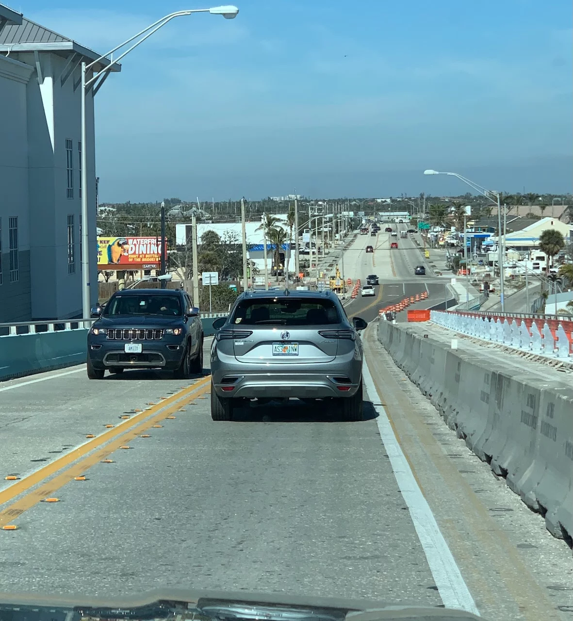 Auf der State Route war über die gesamte Strecke am Strand entlang nur Stop and Go Verkehr möglich. Das ist erstens bedingt durch die Bauaktivitäten, zweitens durch das hohe Verkehrsaufkommen, und drittens durch die Baustellen um die Schäden vom letzten Hurrikan zu reparieren. Wir haben für die mickrigen 20km fast 3h gebraucht.